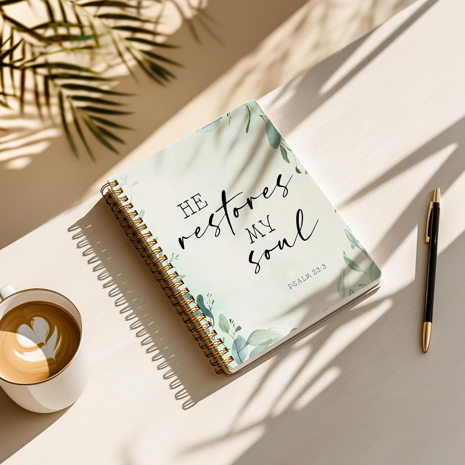 - 2.Bible Journaling Hardcover Spiral Notebook The notebook has a double spiral design, the sturdy spiral binding allows the notebook to lay flat, making it easy to write on both sides of the page. made of thick paper, prevents ink from leaking, safe, easy to write