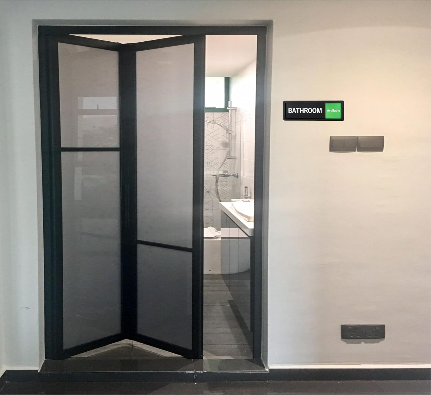 Bathroom Sign – In Use / Available Slide Switch Sign, Premium Durable Acrylic Material, Super Strong Self-Adhesive, Quick Installation, Suitable For Your Home And Business (9×3 Inches, Black) (Bathroom)