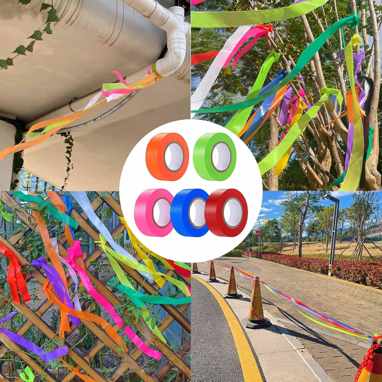 5 Pack Flagging Tape Assorted Flourescent Colors, Non-Adhesive Plastic Ribbon Neon Marking Roll, 0.78"*500ft, Marking Tape for Tree Marking, Hunting, Boundaries and Hazardous Areas,Trail Marking