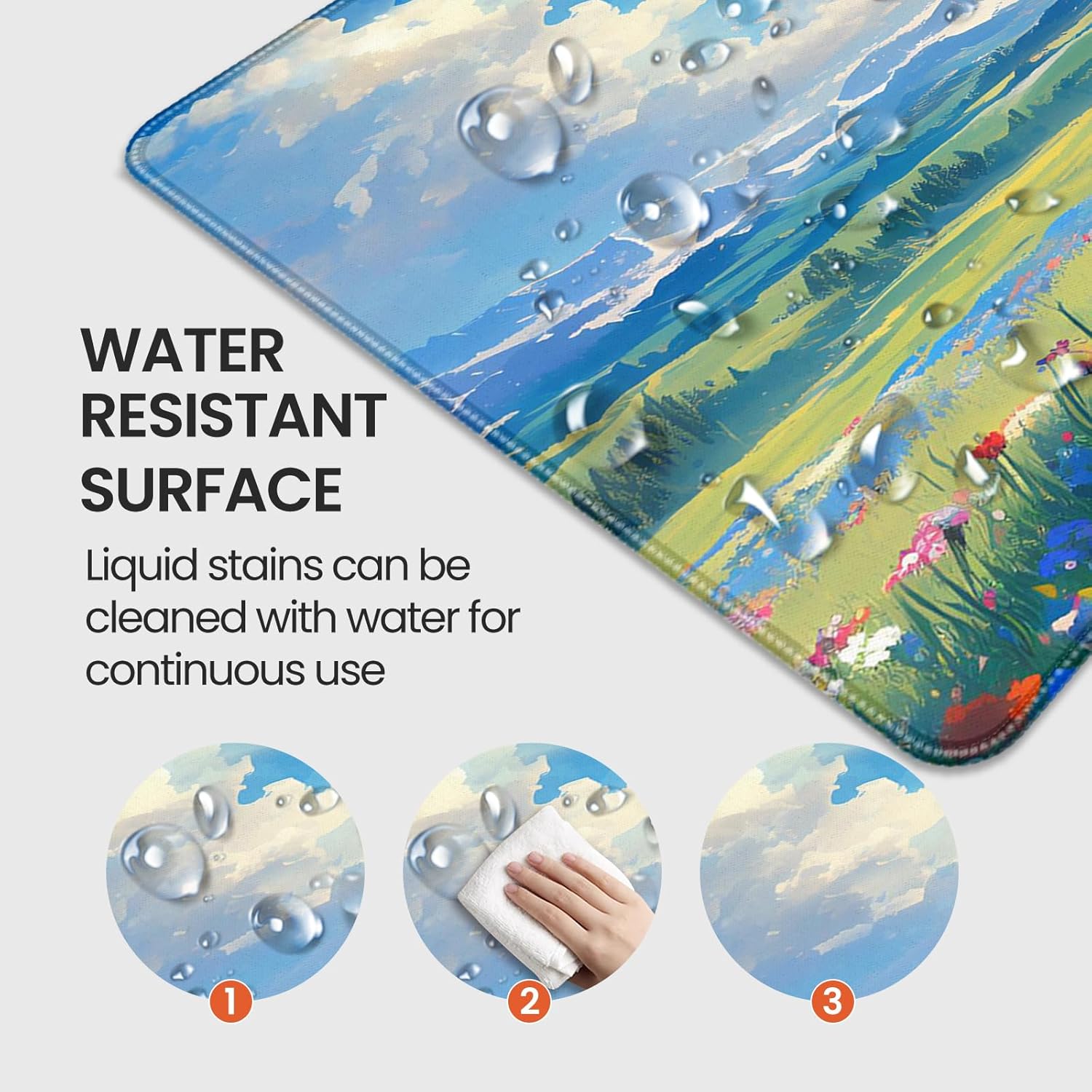 - 【Waterproof & Smooth Surface】Enhanced with nano-coating technology, this waterproof table mat protects the tabletop from scratches, resists liquid spills and sweat stains, is easy to clean, just wipe it with a damp cloth or paper towel, the precisely textured surface ensures perfect mouse tracking accuracy for competitive gaming, while the durable stitched edges can be used for a long time.