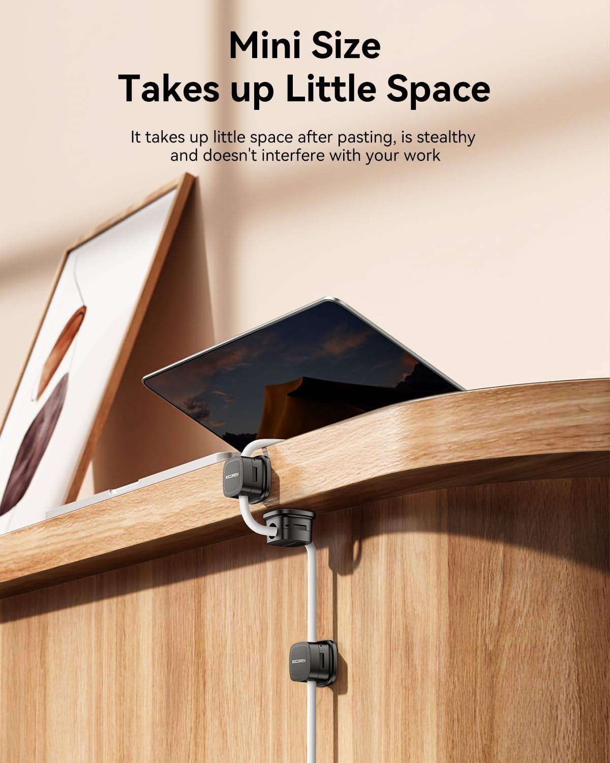- Super Adhesive:The cable management Equipped with Upgrade Acrylic Adhesive, the adhesiveness is increased by 300% compared to ordinary 3M. It firmly adheres to smooth surfaces such as wooden tables/glass/ceramic tiles, and does not leave any residual glue after removal. Each box comes with a Reusable Adhesive Pad, which extends the service life and is more environmentally friendly and economical.