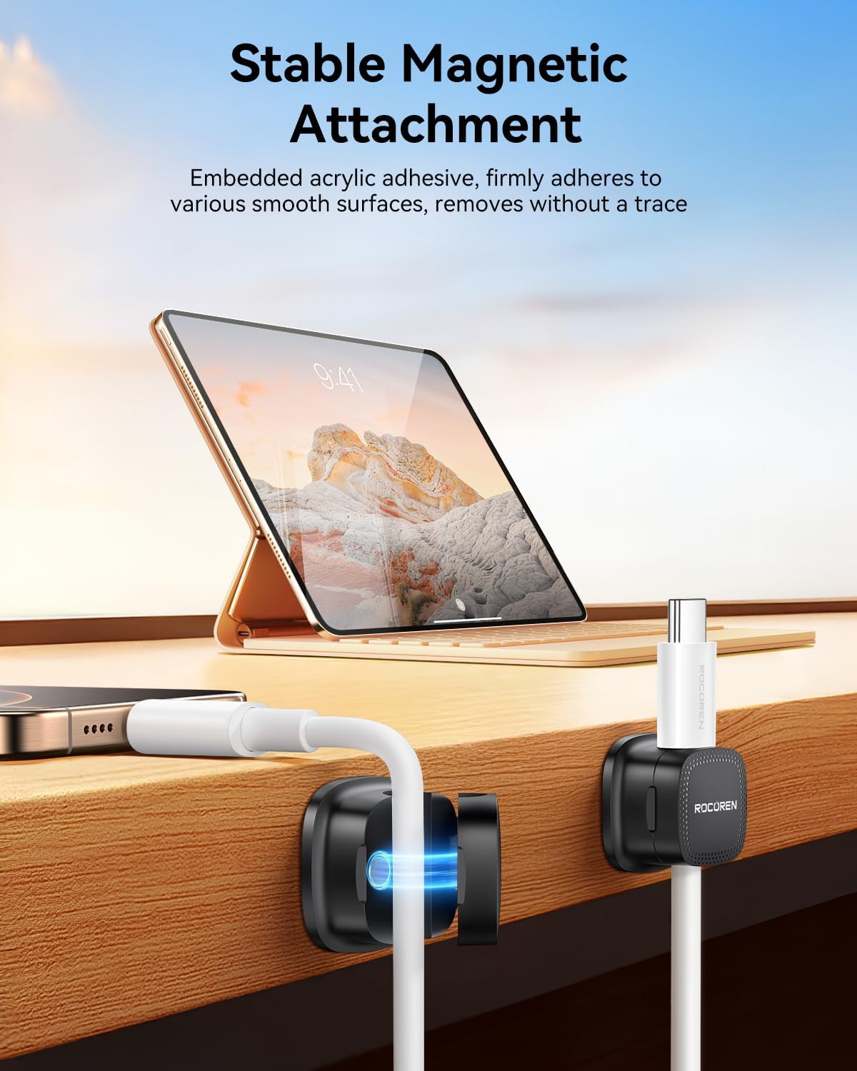 30-Pack Magnetic Cable Clips Cord Organizer,Cable Straps Smooth Adjustable,Rocoren Cable Management Accessories,Cable Holder Clips Wire Holder Keeper for Desktop,Nightstand,Home Office,Workspace,Phone