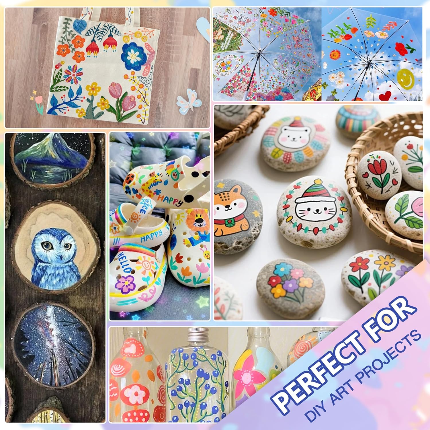 - 🖌️ Works on Virtually Any Surface: Our marker pens are versatile tools that work beautifully on various surfaces, such as paper, rocks, wood, glass, canvas, and more. Whether you're crafting DIY home decor or designing personalized gifts, these markers deliver vibrant, bold colors on every surface, empowering you to unleash your creativity without limits.