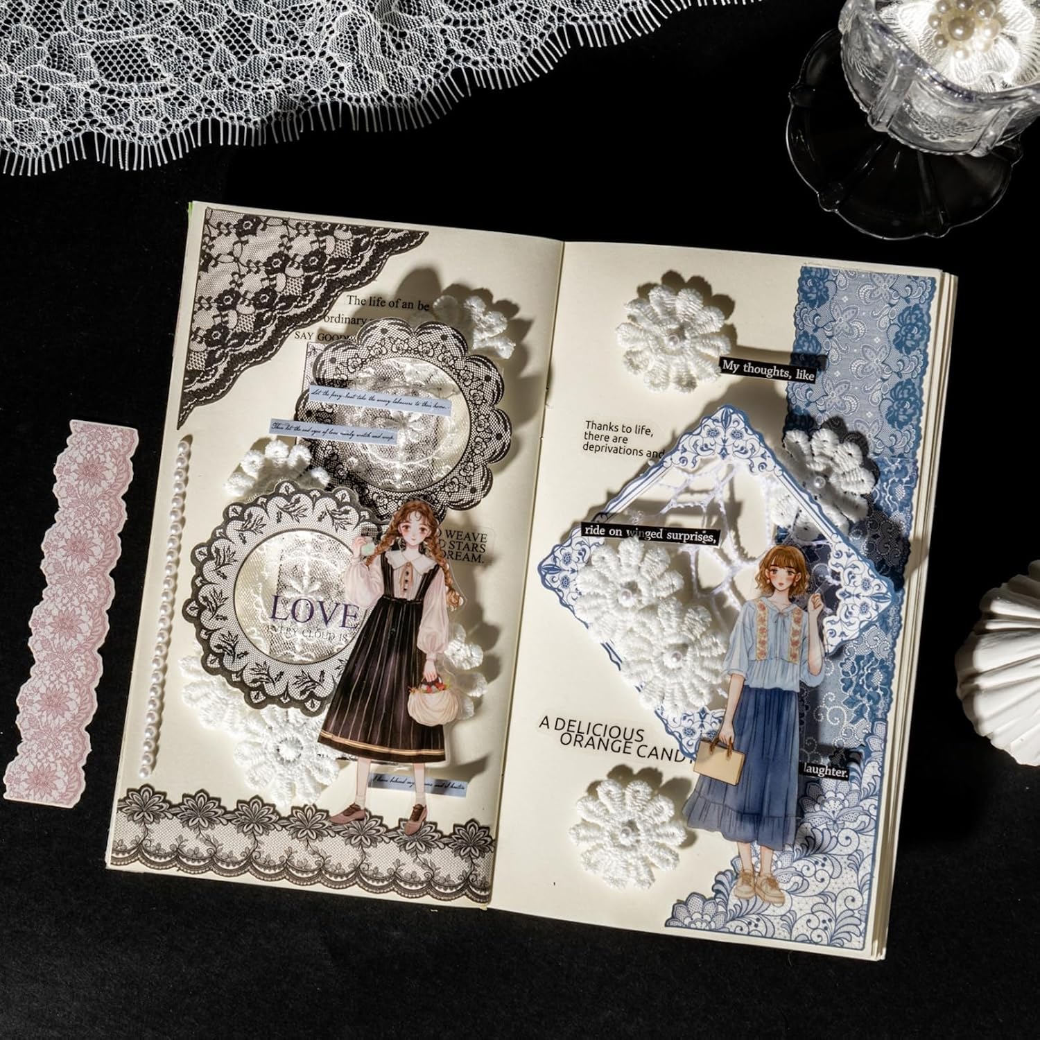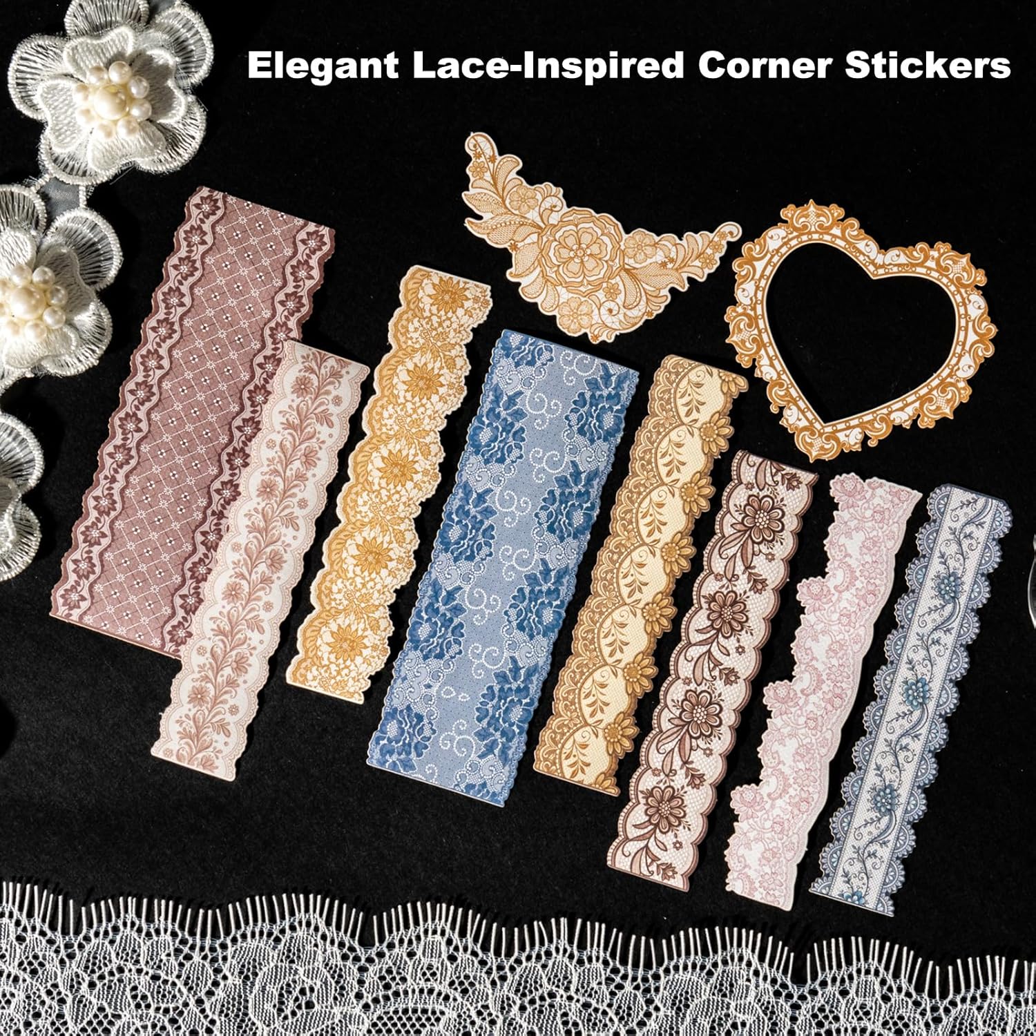 - Elegant Vintage Aesthetic: Includes 90 vintage-inspired lace stickers in 90 unique designs such as hearts corners frames and borders each measuring up to 4.72 x 3.15 inches adding layered texture and graceful charm to journals and scrapbooks