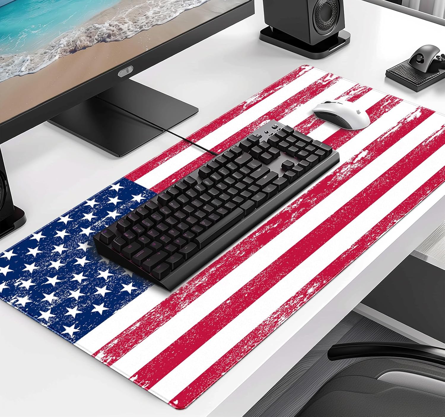 American Flag XXL Extended Mouse Pad, Patriot Large Laptop Pad, Waterproof, Non Slip, Gaming Office and Home Stitching Edge Table Pad 35.4 x 15.7 x 0.12 Inches