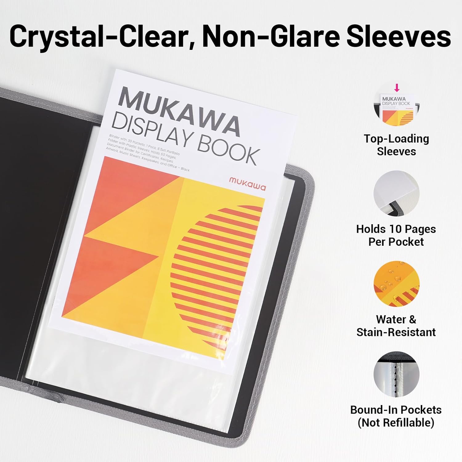 - Acid-Free Poly for Long-Term Protection: Mukawa display book with archival-safe, non-stick PP sheet protectors (top-loading) to prevent ink transfer; each pocket holds up to 10 letter-size pages—ideal presentation book/portfolio folder for documents.