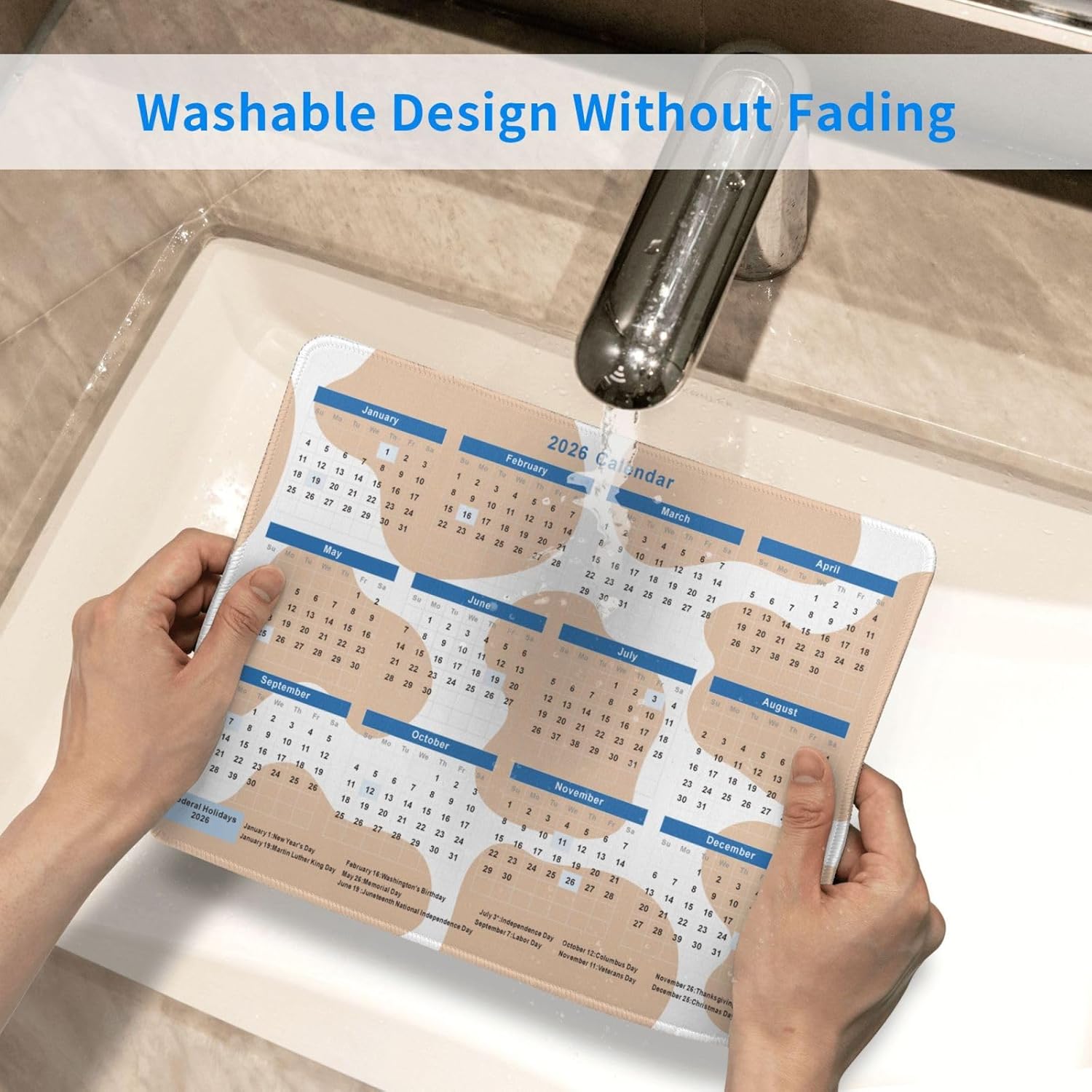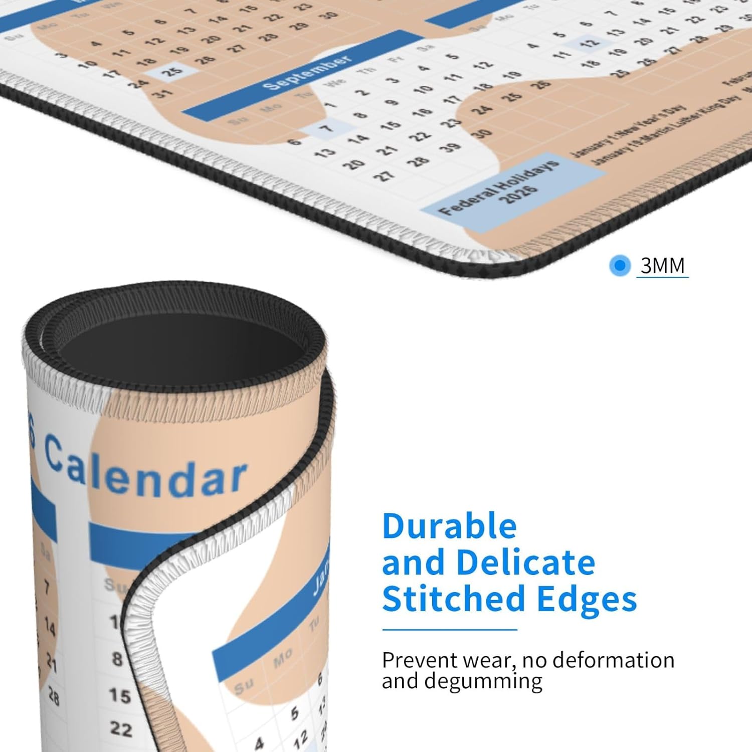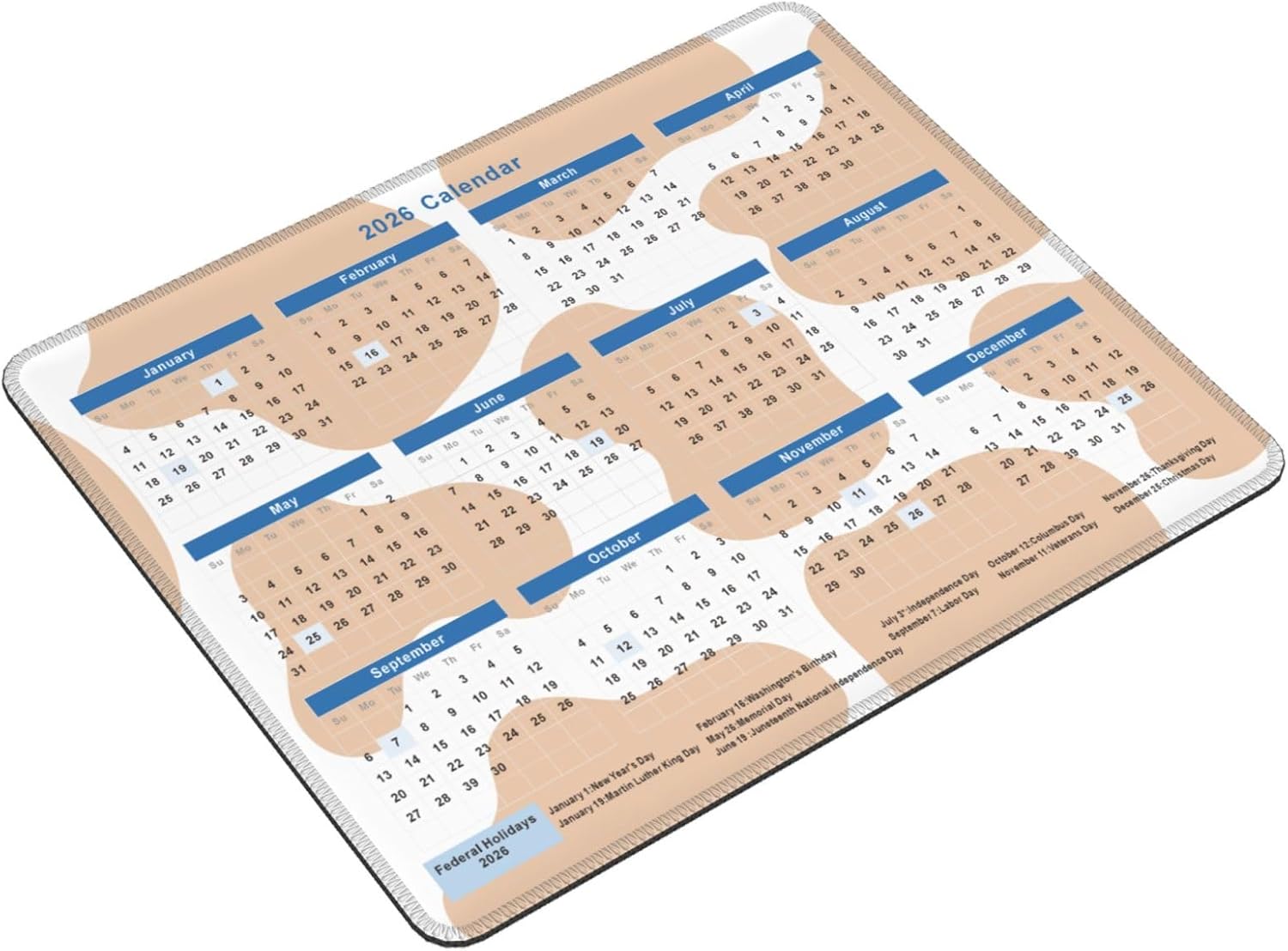 2026 Calendar Mouse Pad Cow Texture, Calendar with Holidays Mouse Pads, Non-Slip Rubber Base Mousepad for Office Desk Computers Laptop