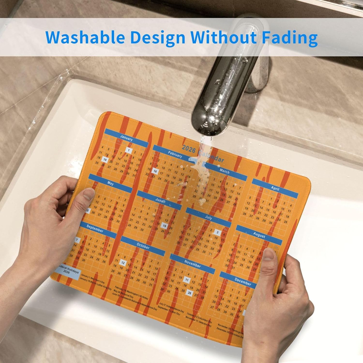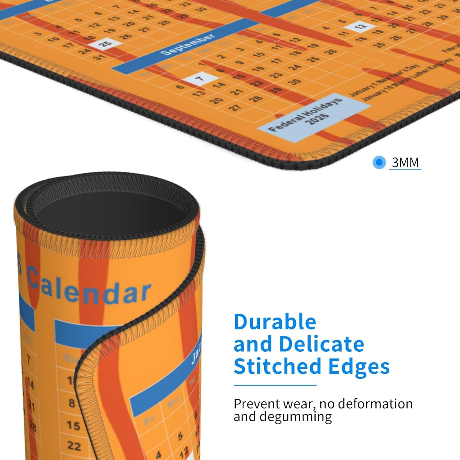 2026 Calendar Mouse Pad Tiger Texture, Calendar with Holidays Mouse Pads, Non-Slip Rubber Base Mousepad for Office Desk Computers Laptop