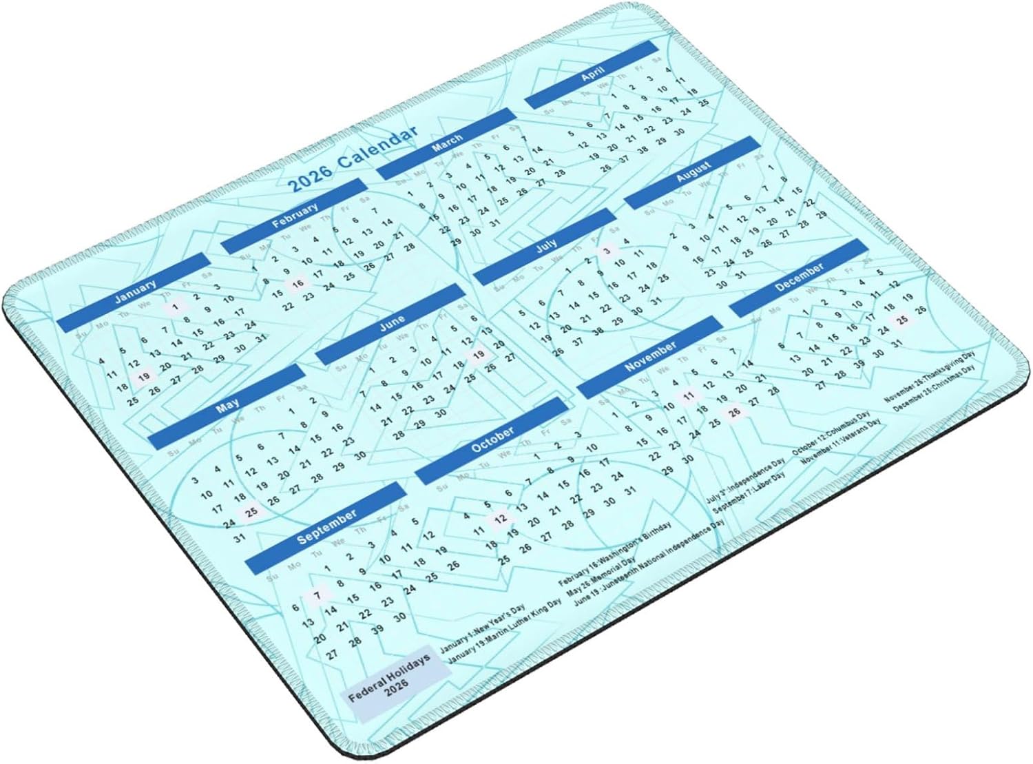2026 Calendar Mouse Pad Geometry, Calendar with Holidays Mouse Pads, Non-Slip Rubber Base Mousepad for Office Desk Computers Laptop
