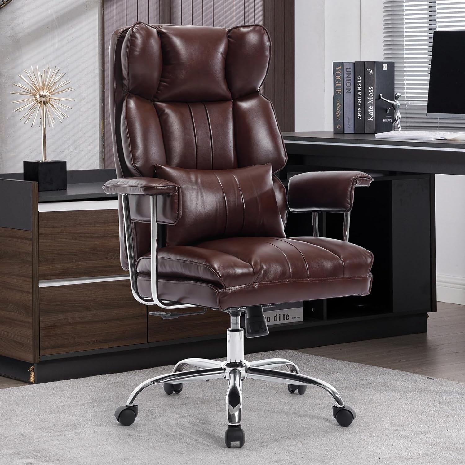 Big and Tall Office Chair 500lbs Wide Seat Executive Office Desk Chair High-Back Office Task Chair, Ergonomic Lumbar Support Computer Office Chairs for Heavy People(Brown)