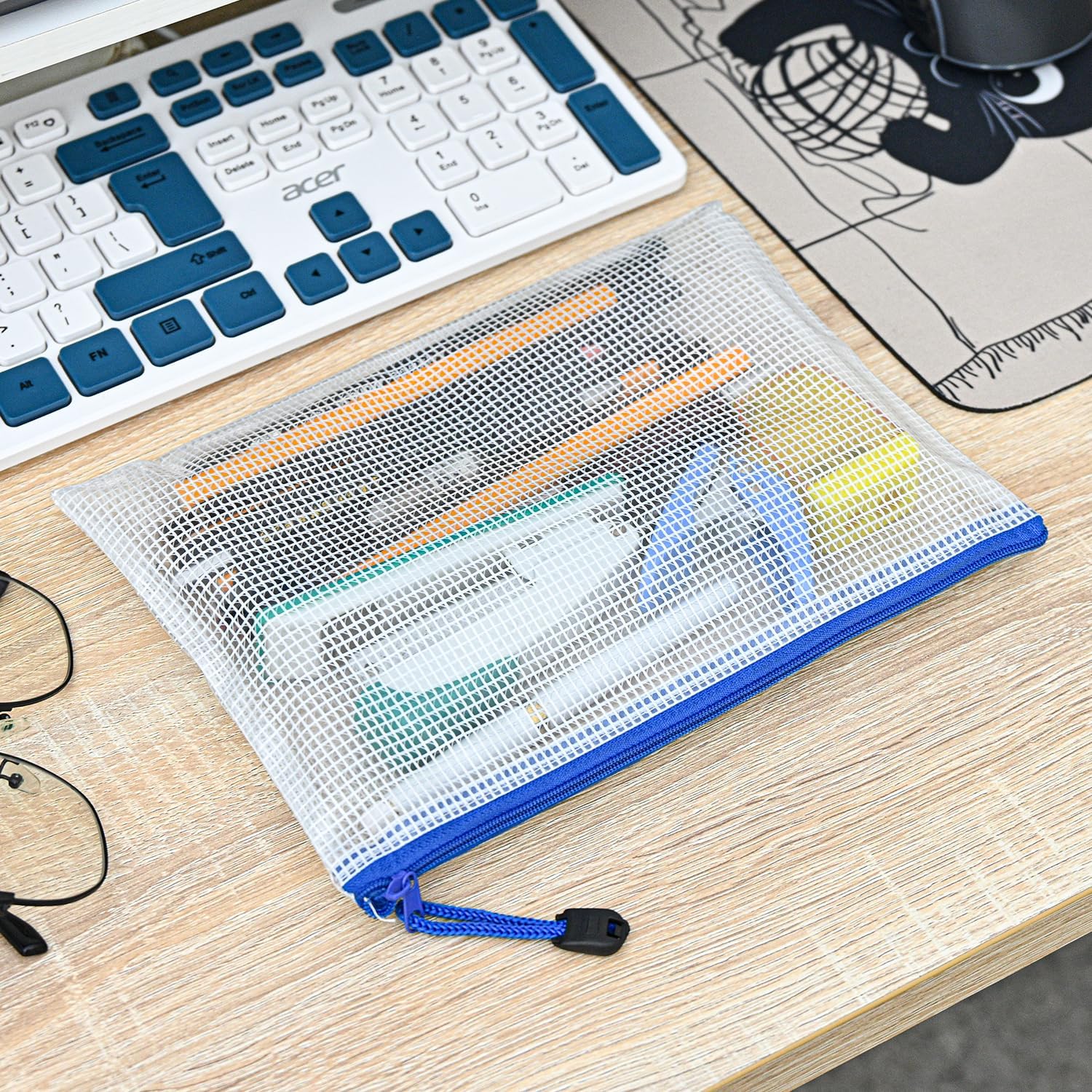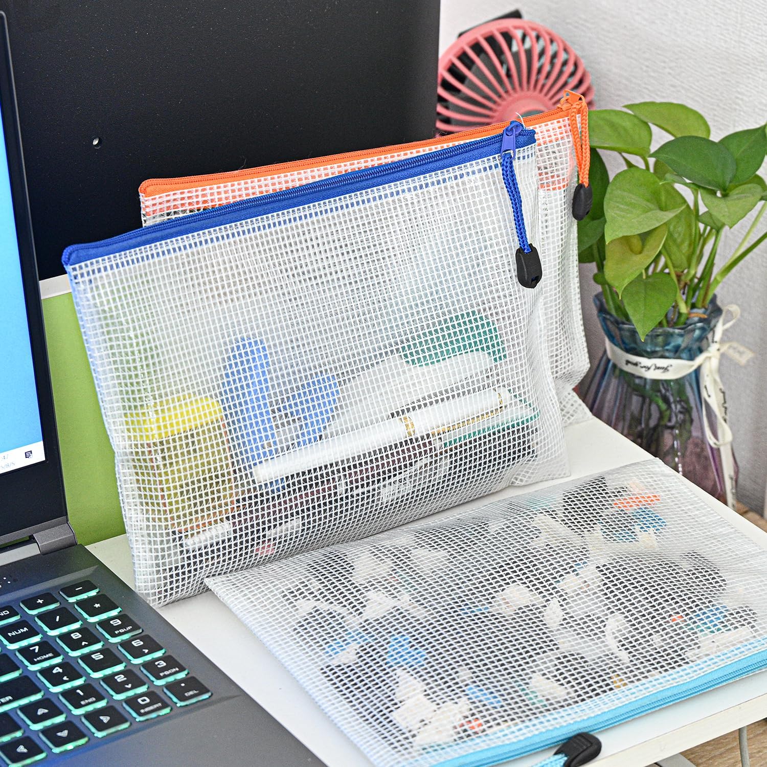 D-KINGCHY 24Pcs Zipper Storage Bags, Plastic Mesh Zippered Pouch for Organization, Waterproof Versatile Bags for Office Supplies School Travel