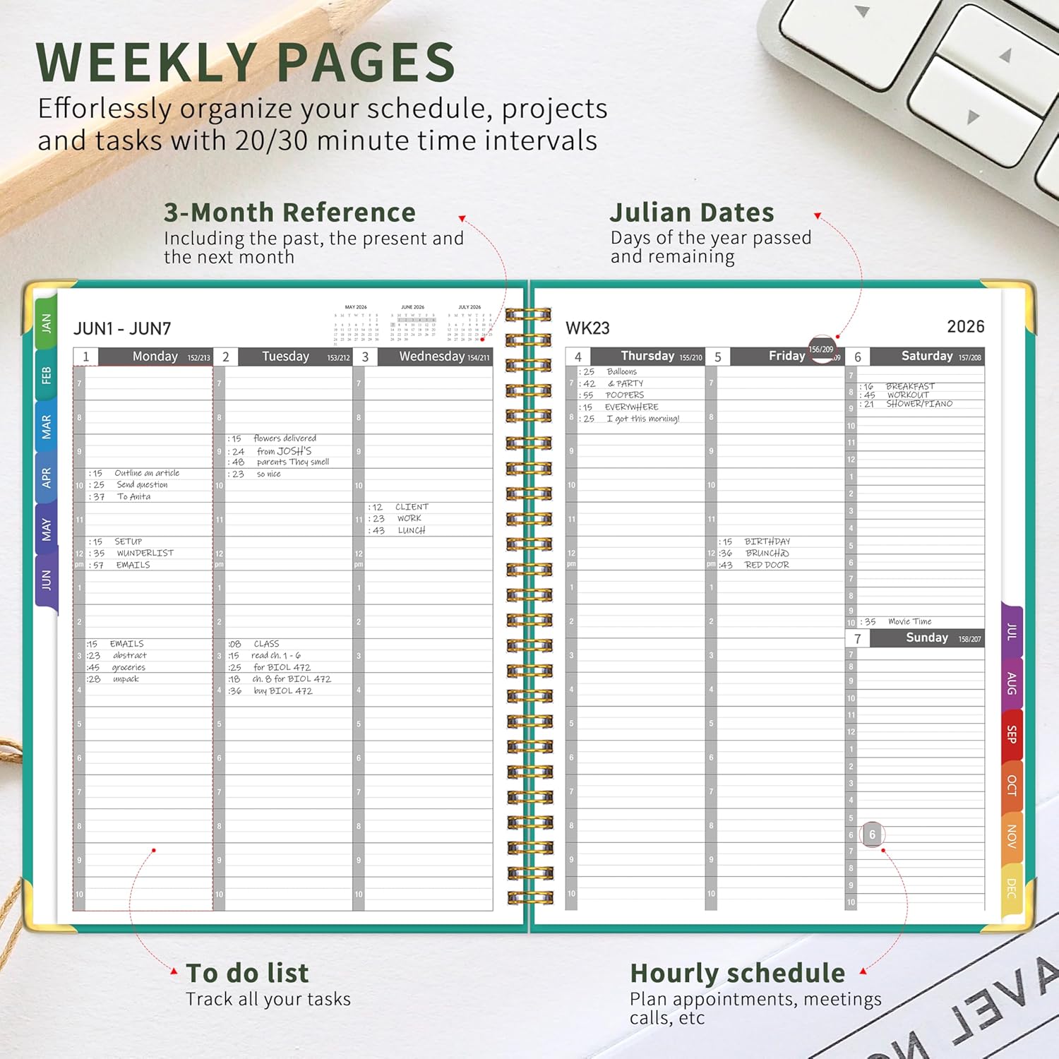 2026 Appointment Book/Planner - 2026 Daily Hourly Planner from Jan. 2026 - Dec. 2026, Weekly appointment Book 2026, 2026 Hourly planner with 20-Minute Interval, 9" x 11", Twin-Wire Binding, Colorful Tabs, Pocket