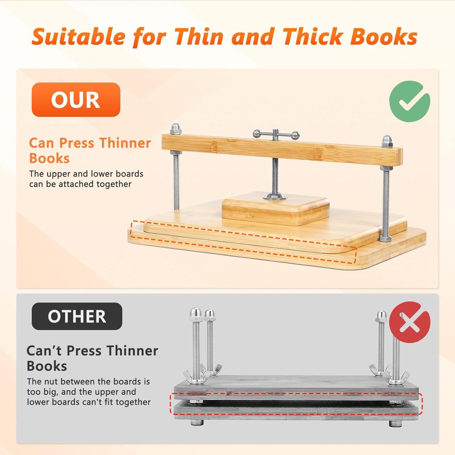 - Wide Range of Uses: This versatile wooden book press can meet various needs, including bookbinding, old book repair, cover binding, DIY handmade books, embossing, and album making. Suitable for beginners and experienced bookbinders, it is a practical tool for bookbinding enthusiasts.
