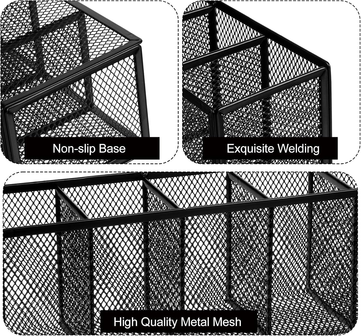 - ăMulti-Compartment OrganizationăWith 6 spacious compartments, this metal mesh pen holder allows you to categorize and store various items efficiently. Whether itâs pens, markers, scissors, or makeup brushes, the divided sections help maintain a clutter-free workspace. The design promotes easy access to essentials, saving time and enhancing productivity in any setting.