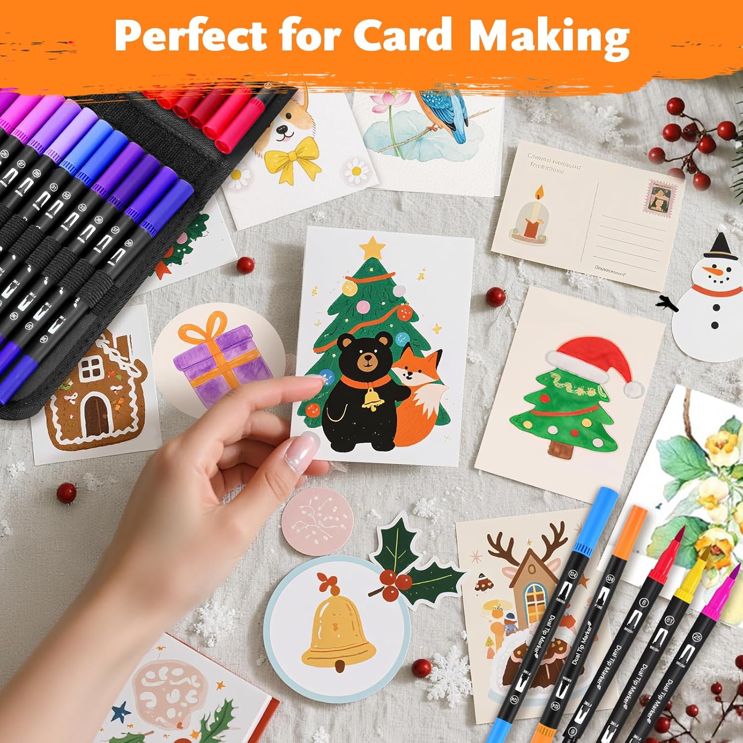 - SMOOTH ACID-FREE & NON-TOXIC INK: The highly pigmented acid-free allows your artwork to last against fading. Water based ink has NON-TOXIC & NON-Pungent Odor, dry fast,making children and adults feel comfortable when creating masterpieces, every pen will give you a smooth writing experience with no smear, no bleeding.These dual tip brush pens have plenty ink that you don't have to worry about running out quickly.