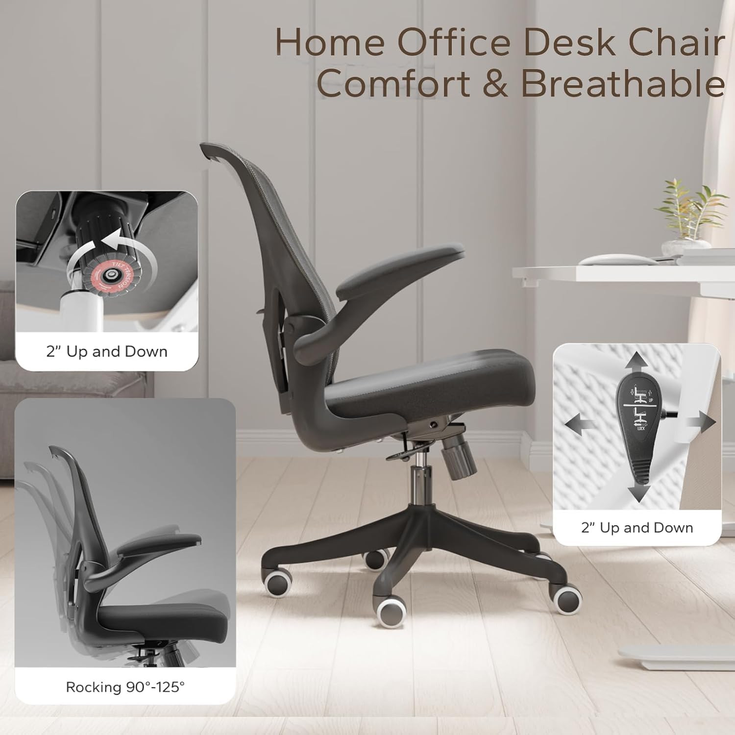 - 【Function and Design】Ergonomic design helps the backrest has prominent lumbar support to help you maintain a relaxed posture during long hours of work or study, comfortable mesh with back support points can fit the natural curvature of the spine, the armrests of the computer chair can provide comfortable support for the arms, and it can be flipped up when not in use, effectively saving space.