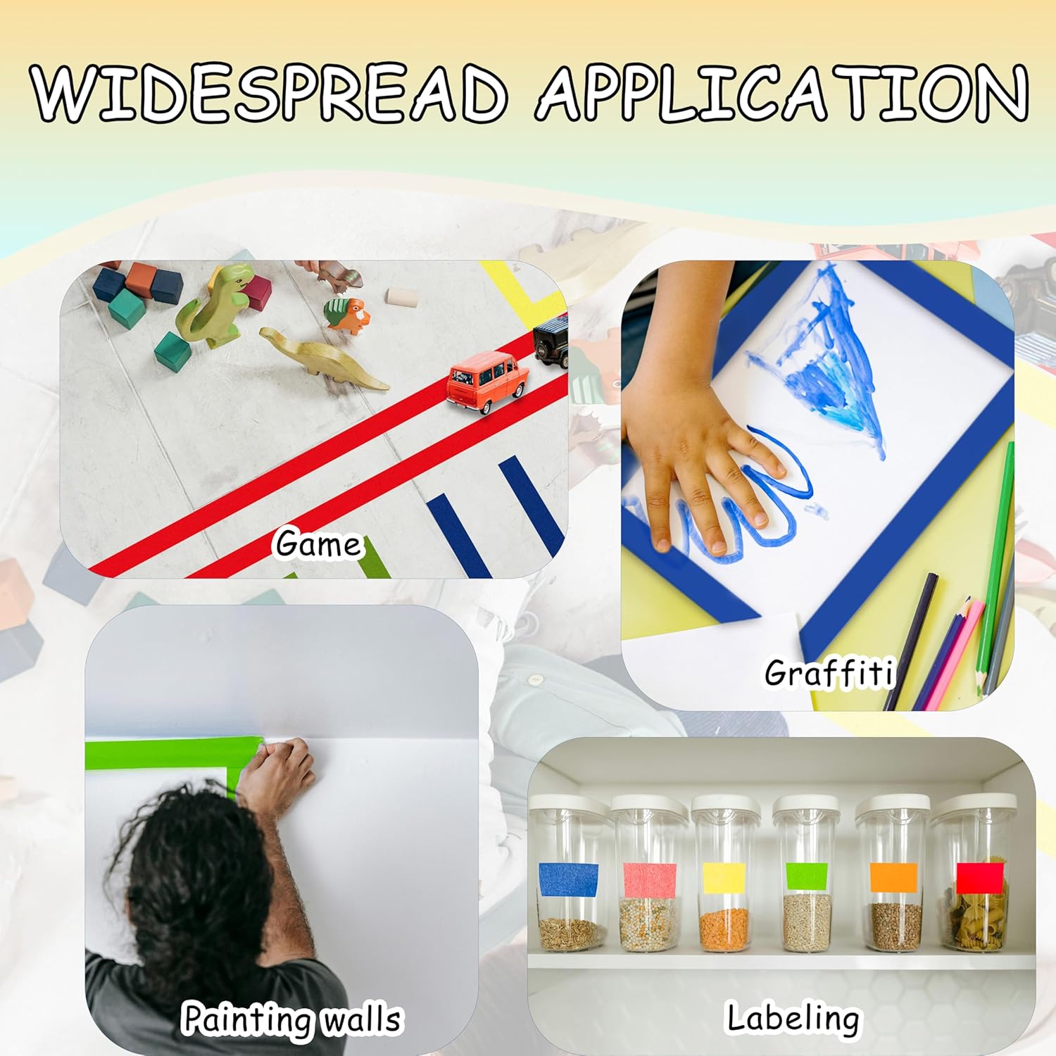 - 【PROFESSIONAL GRADE COLORFUL TAPE】:High contrast colorful masking tape stands out on any surface, ensures clear lines, maintains straightness and fits perfectly on the surface or wall, prevents spray spills/bleeding errors.