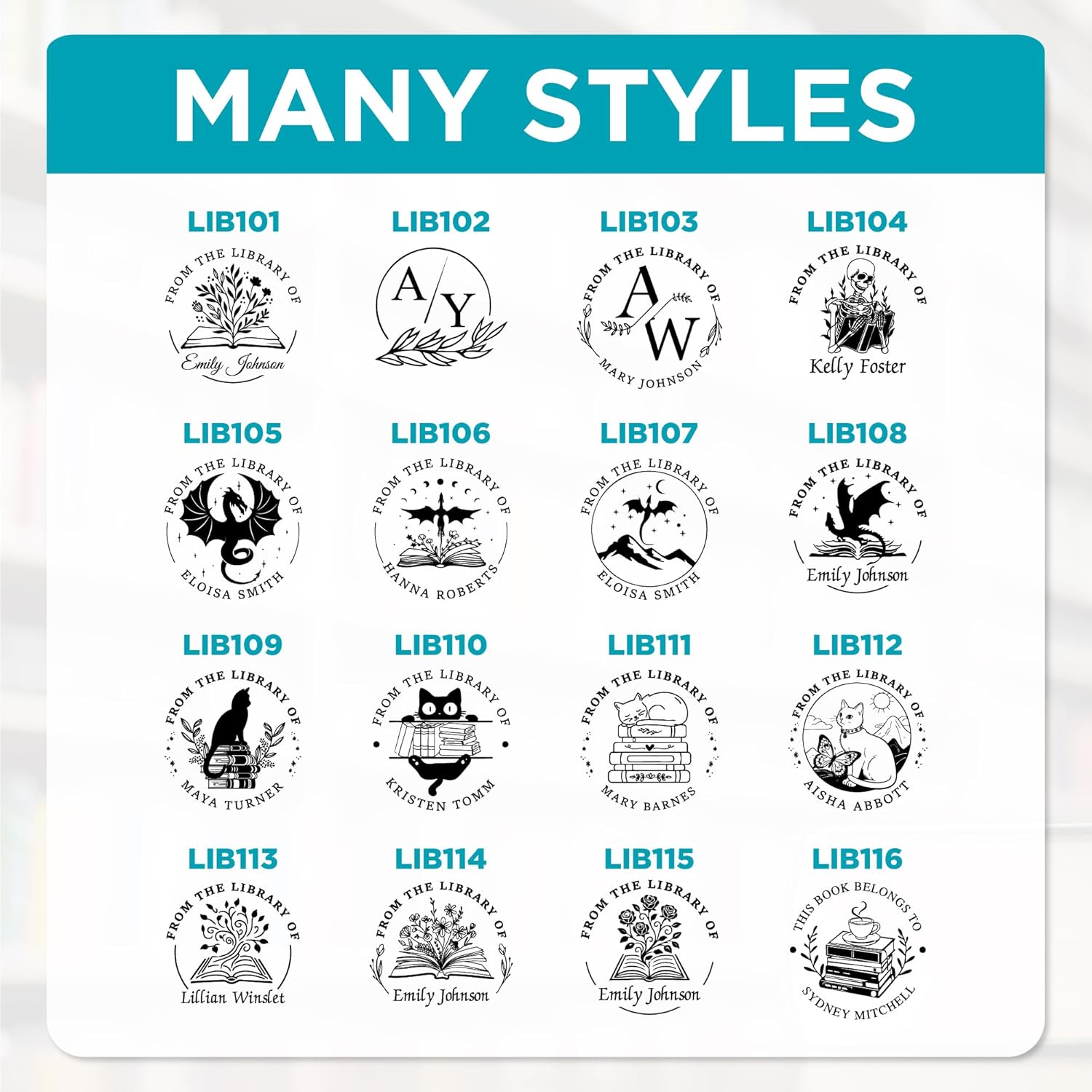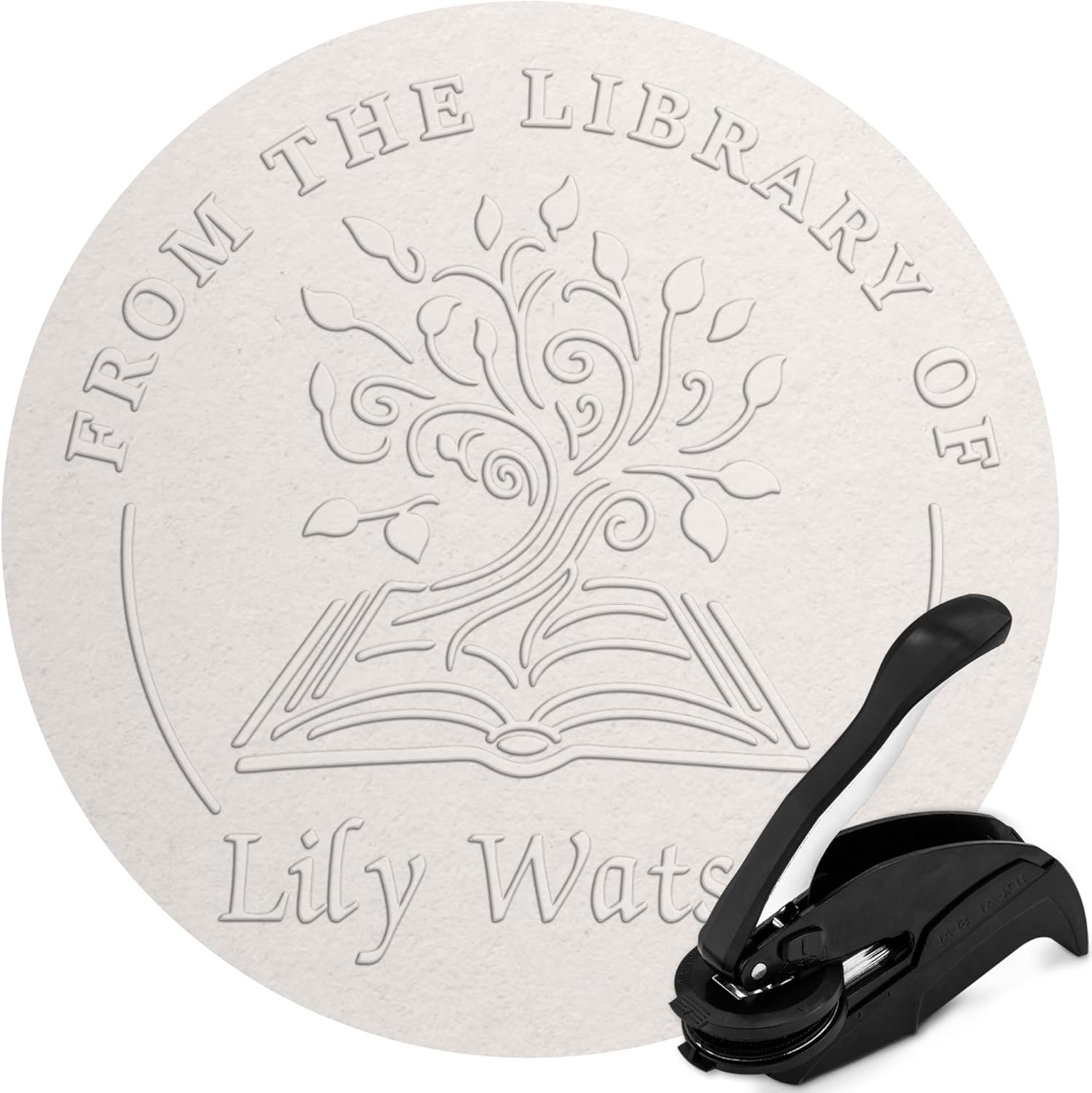 Custom Library Embosser - Style 113 - Embosser, Wood Stamp or Self Inking Stamp - Book Embosser Includes 50 Gold Seals - Custom Stamp Seal from The Library of
