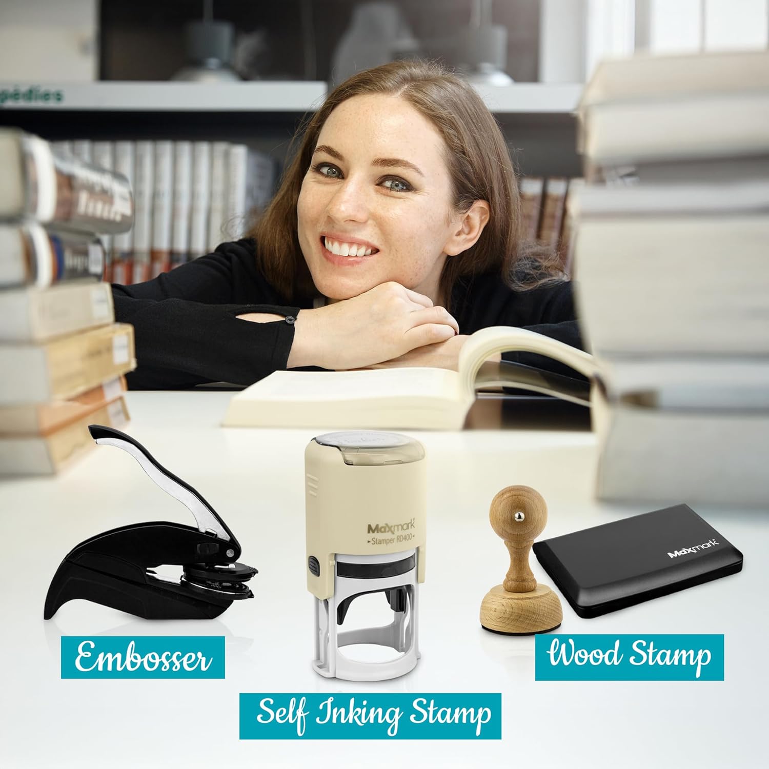 Custom Library Embosser - Style 114 - Embosser, Wood Stamp or Self Inking Stamp - Book Embosser Includes 50 Gold Seals - Custom Stamp Seal from The Library of