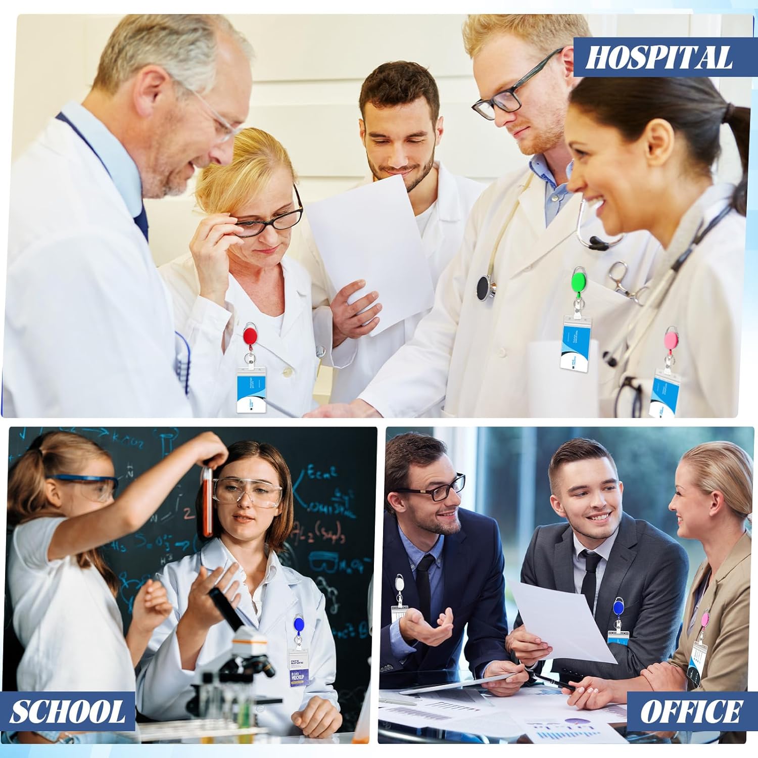 - Package Includes: you will receive 60 pieces of heavy duty retractable badge reels and 60 pieces of vertical clear ID card holder, enough quantity for your replacement needs, and you can share them with your friends, family, and colleagues