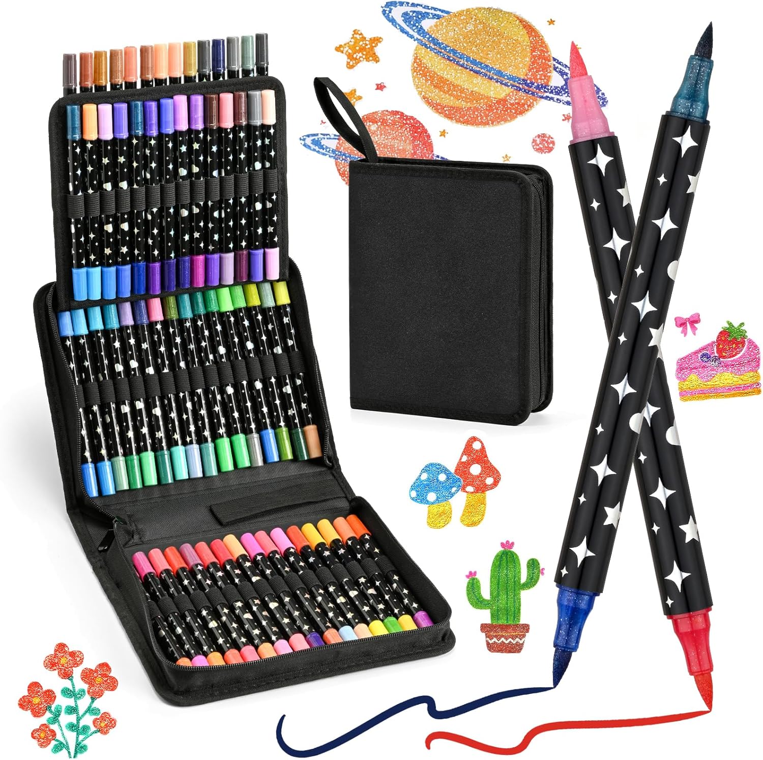 Glitter Markers Pens,120 Colors Dual Tip Brush Glitter Pens Set 60 Pack Sparkle Markers for Art Supplies Scrapbooking, Cards, DIY Crafts, Adults Coloring Books