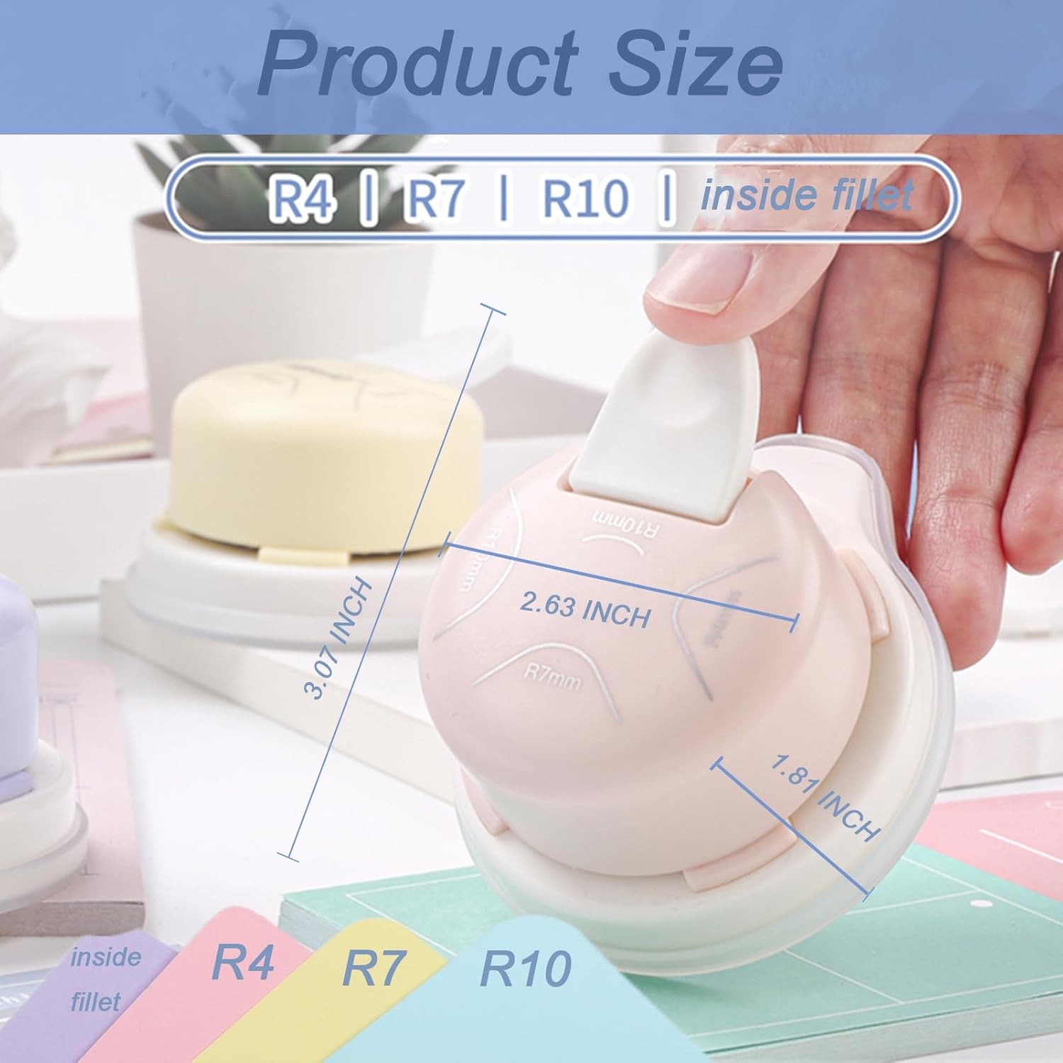 - 4 IN 1 Corner Rounder Punch: Including 4mm 7mm 10mm size rounded corners and inside fillet, it is a space saver to have four of them combined into one, comes in three colors.