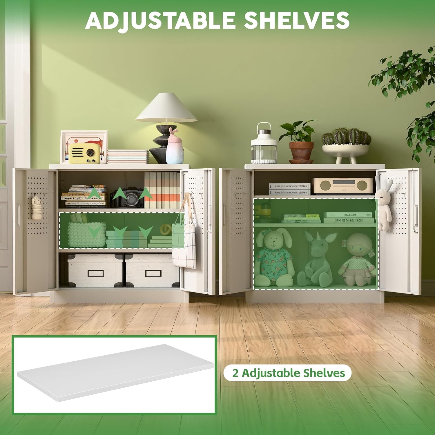 Aobabo 31.5" H Small Garage Storage Cabinet with Pegboard,Lockable File Storage Cabinet with 2 Adjustable Shelves for Garage, Office, School, Assembly Require, White