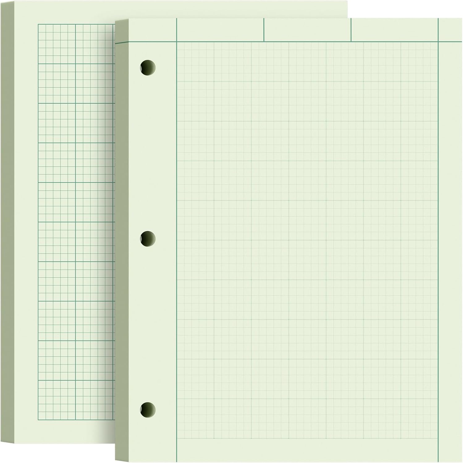 - [Glue-Top Binding with 3-Hole Punching]: The Engineering paper notepad 8.5 x 11 adopts a convenient top-glue binding that allows for easy tear-off without damaging the sheet. Engineering paper loose leaf 3-hole punched design fits most standard binders, making organization simple. A rigid chipboard backing provides added support for writing on the go or without a desk
