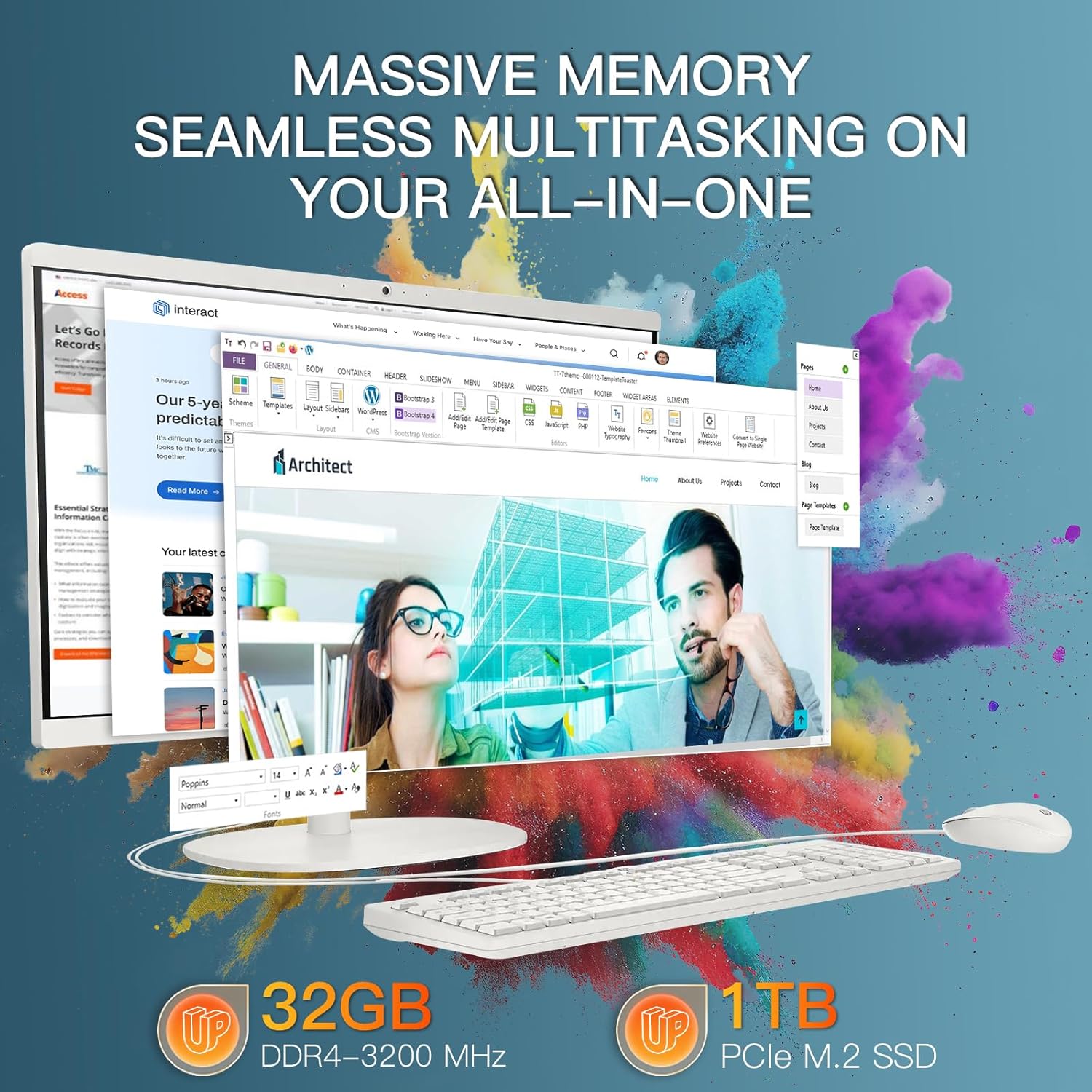 - ✨ Memory and Storage: This hp all in one supports up to 32 GB RAM and 1 TB SSD; upgrade for faster speeds and massive file storage; ideal for students, families, and remote workers managing heavy files