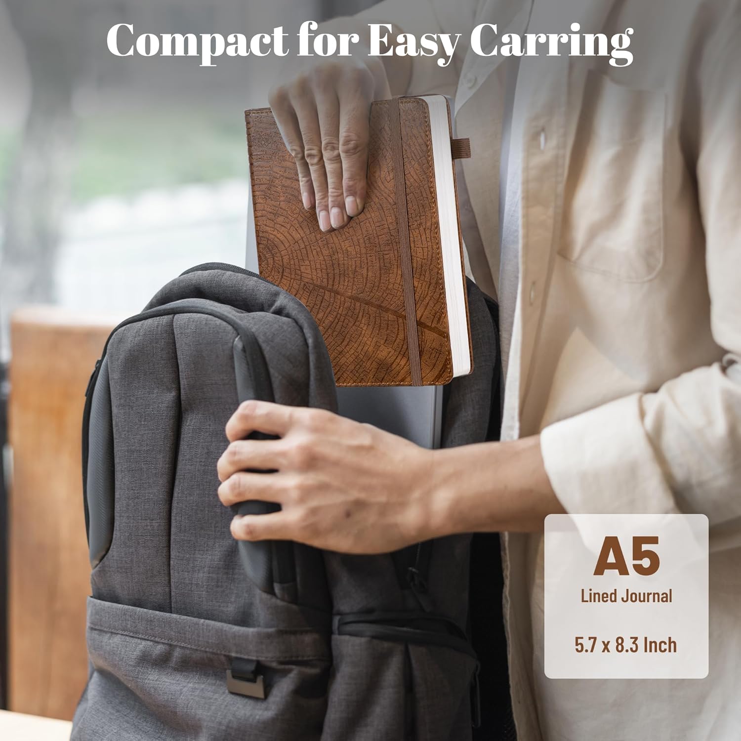 - ๐๐๐ ๐๐ง ๐๐๐๐ญ๐ก๐๐ซ ๐๐จ๐ฎ๐ง๐ ๐๐จ๐ฎ๐ซ๐ง๐๐ฅ:The cover features a tree growth ring pattern, lightly debossed onto cruelty-free vegan leather. The textured cover adds visual interest and sets it apart from plain designs. The tree ring pattern represents personal growth, accomplishments, and the challenges along the way. 5.7 ร 8.3 inches, compact and easy to carry