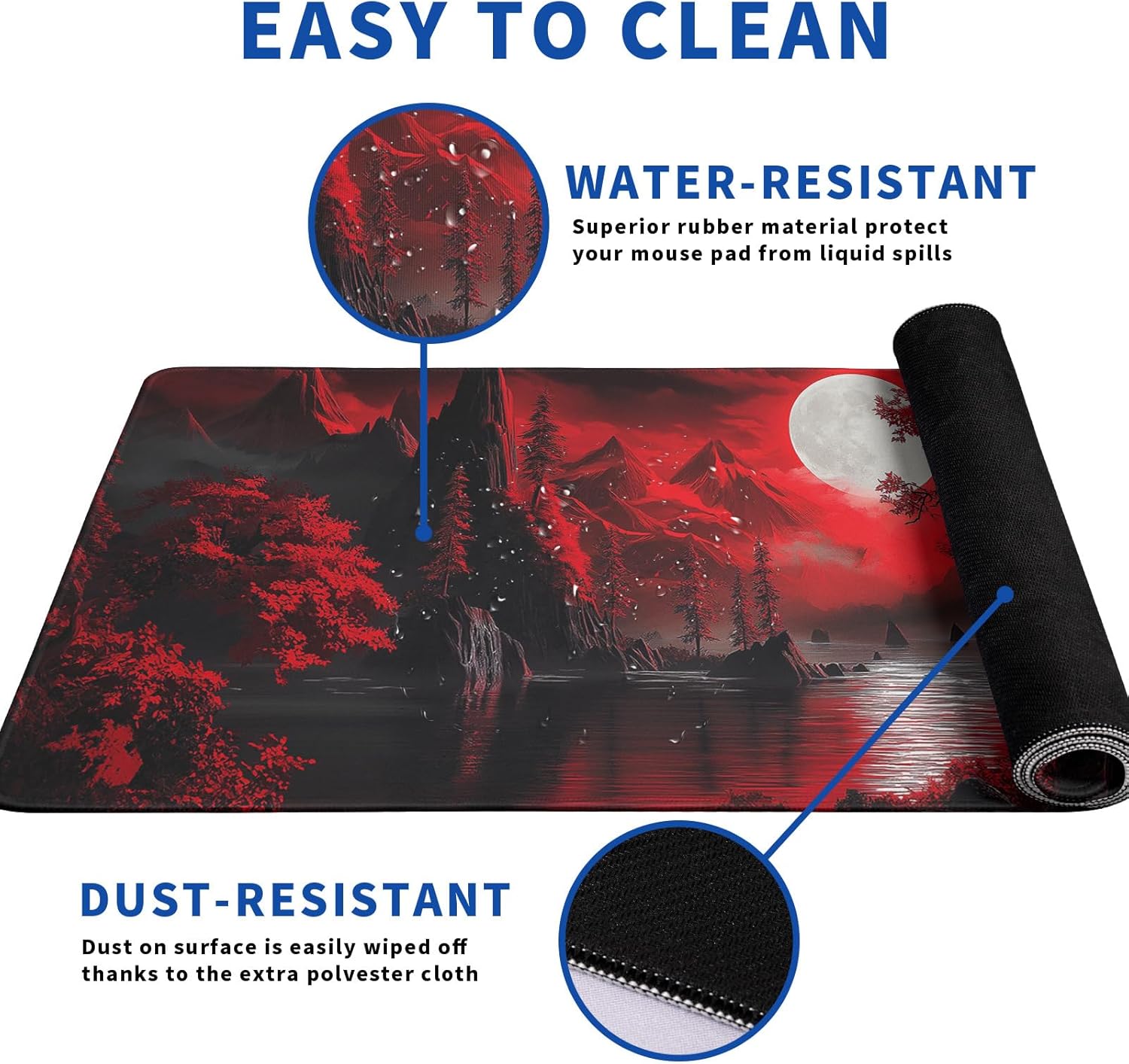 - ♥[Easy To Clean]:This large Darkness Red Moon mouse pad for desk, Spill-proof coating protects your desktop from spilled water, Drinks, Ink and the other liquid spilled liquid or other accidents. Easy to clean, Just wipe with a wet cloth or paper, Does not fade and can be washed and foldable without leaving creases, Easy to carry.