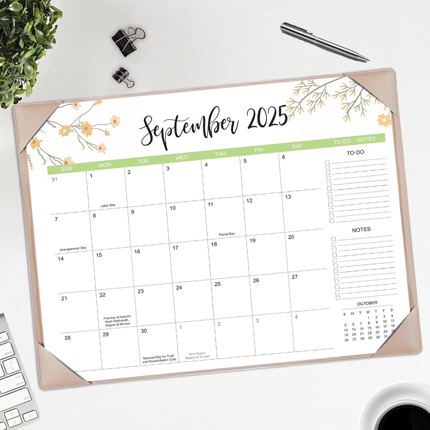 Desk Calendar 2025-2026 with Desk Mat – 22" x 17" Large Desk Pad Calendar Runs From Sep 2025 to Dec 2026, Floral Design Desktop Calendar with To Do List, Personal Desk Calendar Planner for Home, Office
