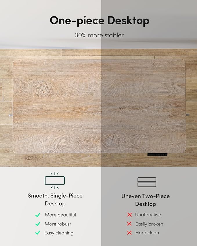 - Seamless One-Piece Design: Fezibo adjustable standing desk features a smooth, one-piece desk surface without visible seams. Unlike other models with joined panels, this seamless design offers 30% enhanced stability to provide a solid foundation for your equipment.