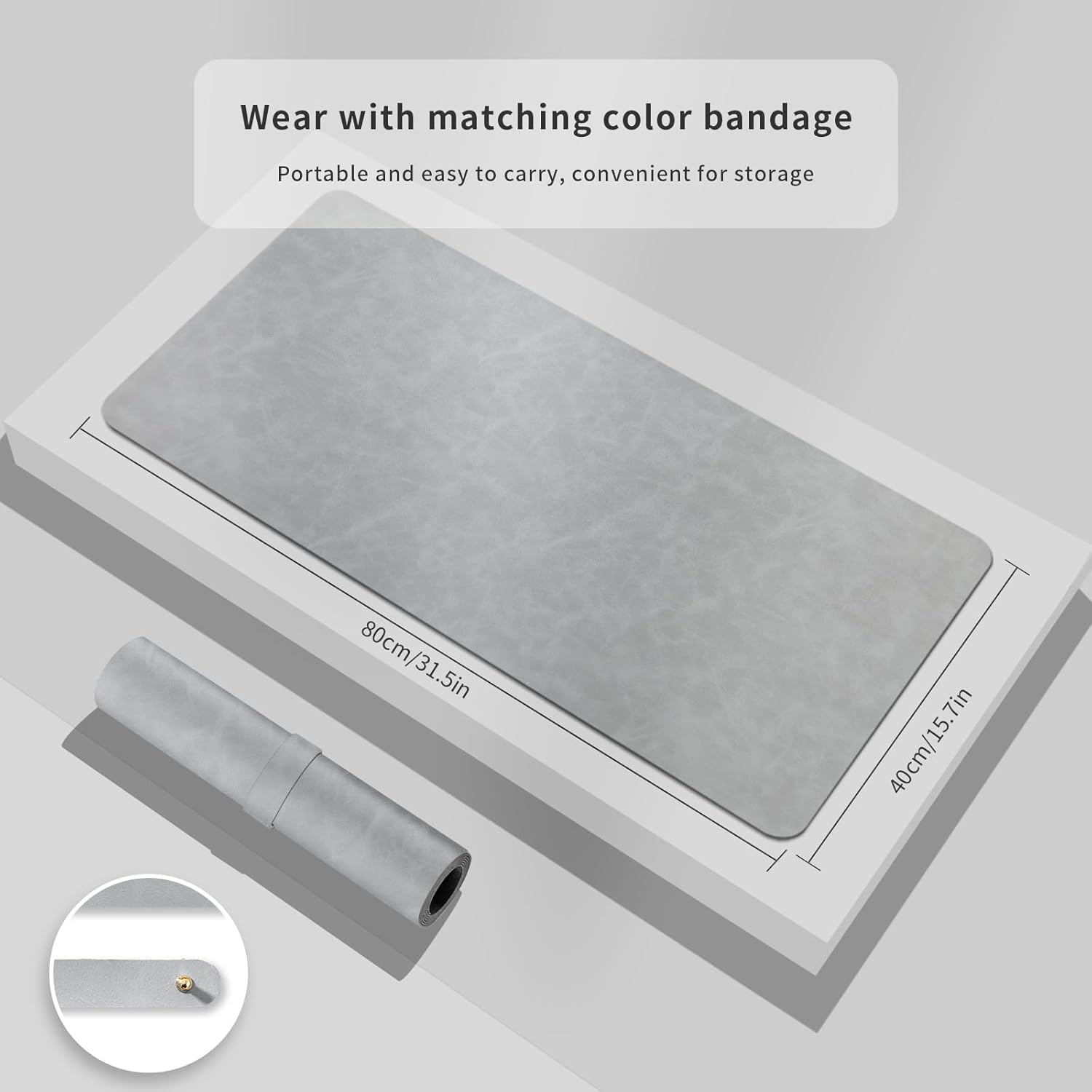 Crazy Horse Leather Desk Mat Large Mouse Pad Laptop Desk Pad Waterproof Non-Slip Table Blotter Desktop Writing Pad for Office and Home (Light Grey, 120x43cm)