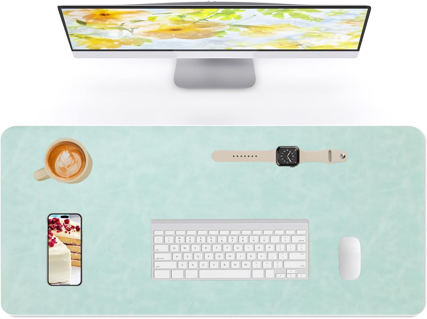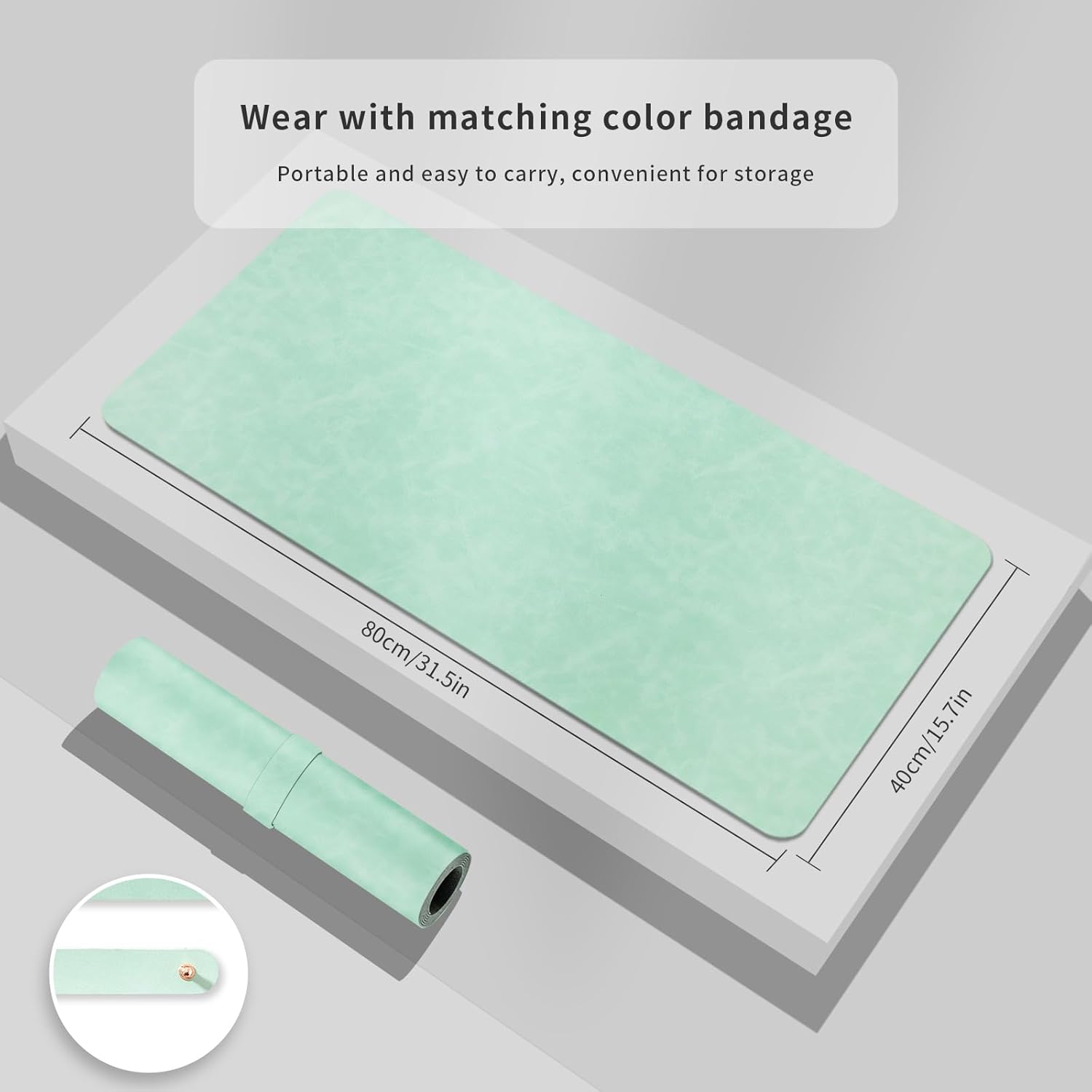 Crazy Horse Leather Desk Mat Large Mouse Pad Laptop Computer Desk Pad Waterproof Non-Slip Table Blotter Desktop Keyboard Writing Pad for Office and Home (Light Green, 120x43cm)