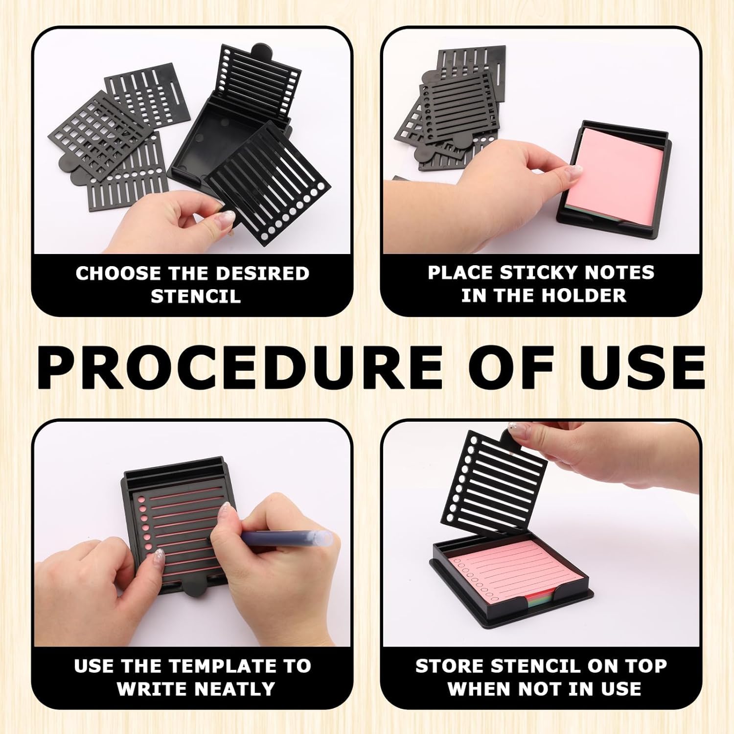 - 1 PCS 3x3 Notes Holder Set: The package includes a single sticky note holder, five distinct templates, and one pack of sticky notes to help you get started on your organizational tasks immediately. This all-in-one set is designed for convenience, providing a complete solution for anyone who wants to bring order to their office, home, or classroom workspace. The transparent design of the holder ensures the templates remain easily visible and accessible.