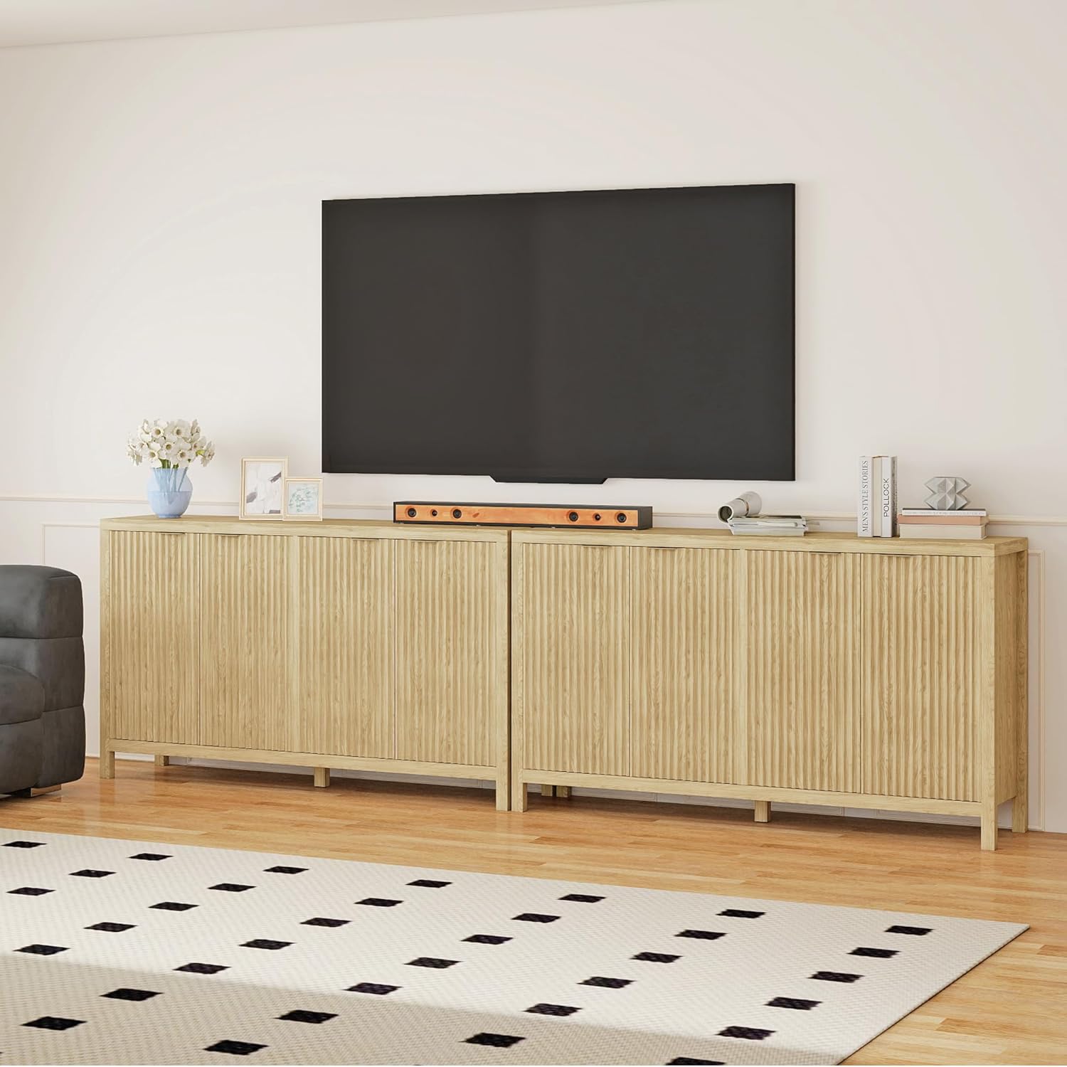 - ăMultifunctional Fluted CabinetăThis sideboard buffet cabinet with storage is suitable for various living spaces. You can use one as a sideboard or buffet cabinet, or combine 2 to create a media TV cabinet in the living room, meeting your multiple needs