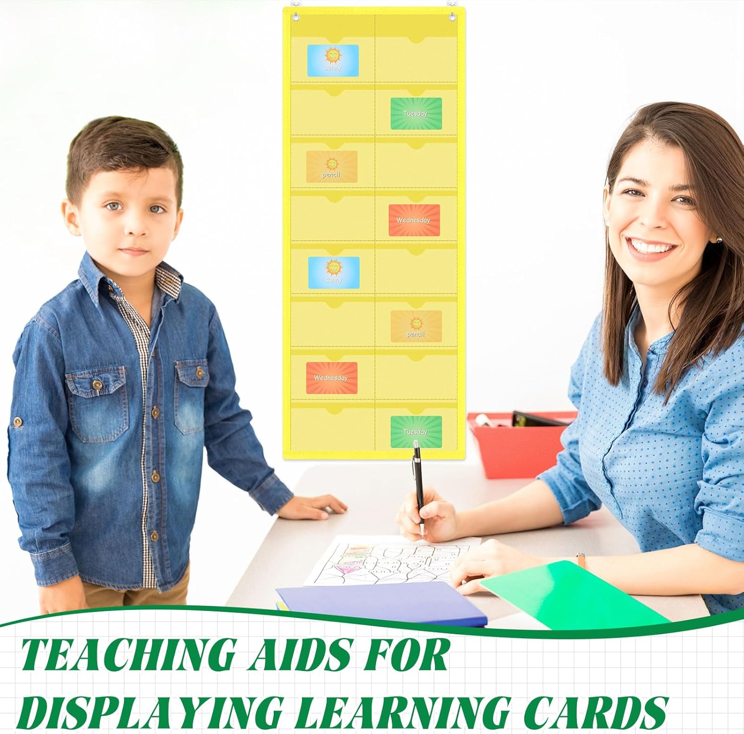 - Easy to Hang: the flash card organizer is very thin and lightweight, only 2 common pins are needed to hang, no need to use a lot of nails to install, drill holes or clutter your space, minimize damage to the wall