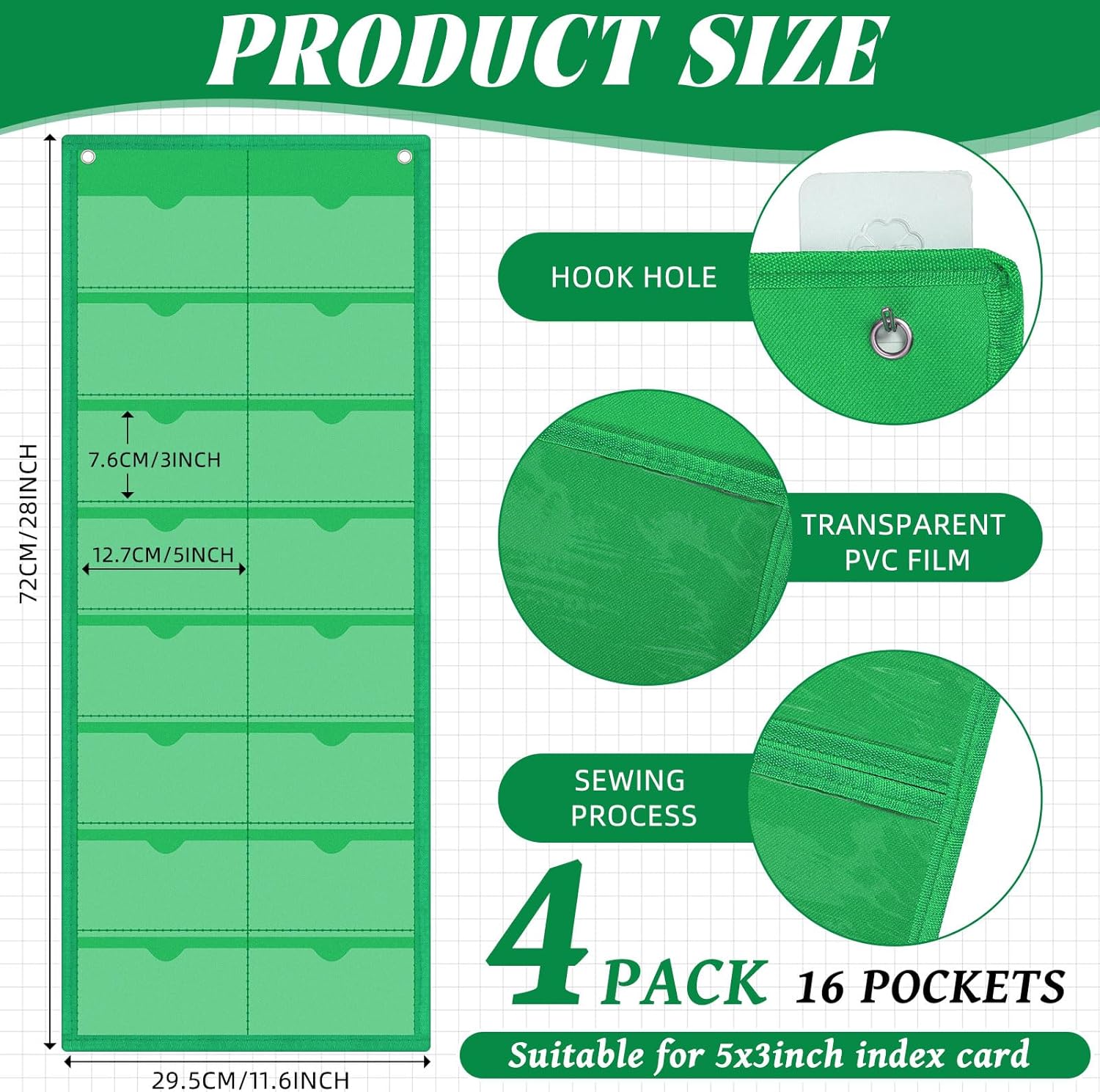 - Storage Capacity: you will receive 4 business card index card holders, each with 16 transparent pockets, suitable size to hold cards, note cards or photos, hanging index card holder measures approximately 72 x 29.5 cm/28.4 x 11.6 inches, each pocket measures approximately 7.6 x 12.7 cm/3 x 5 inches