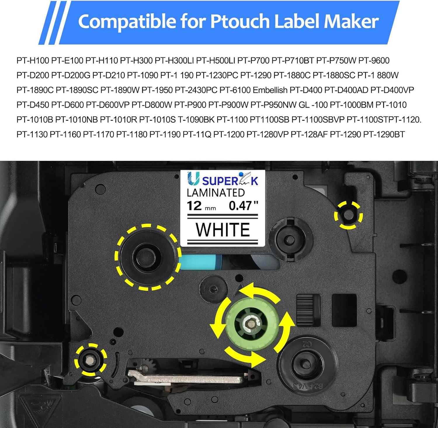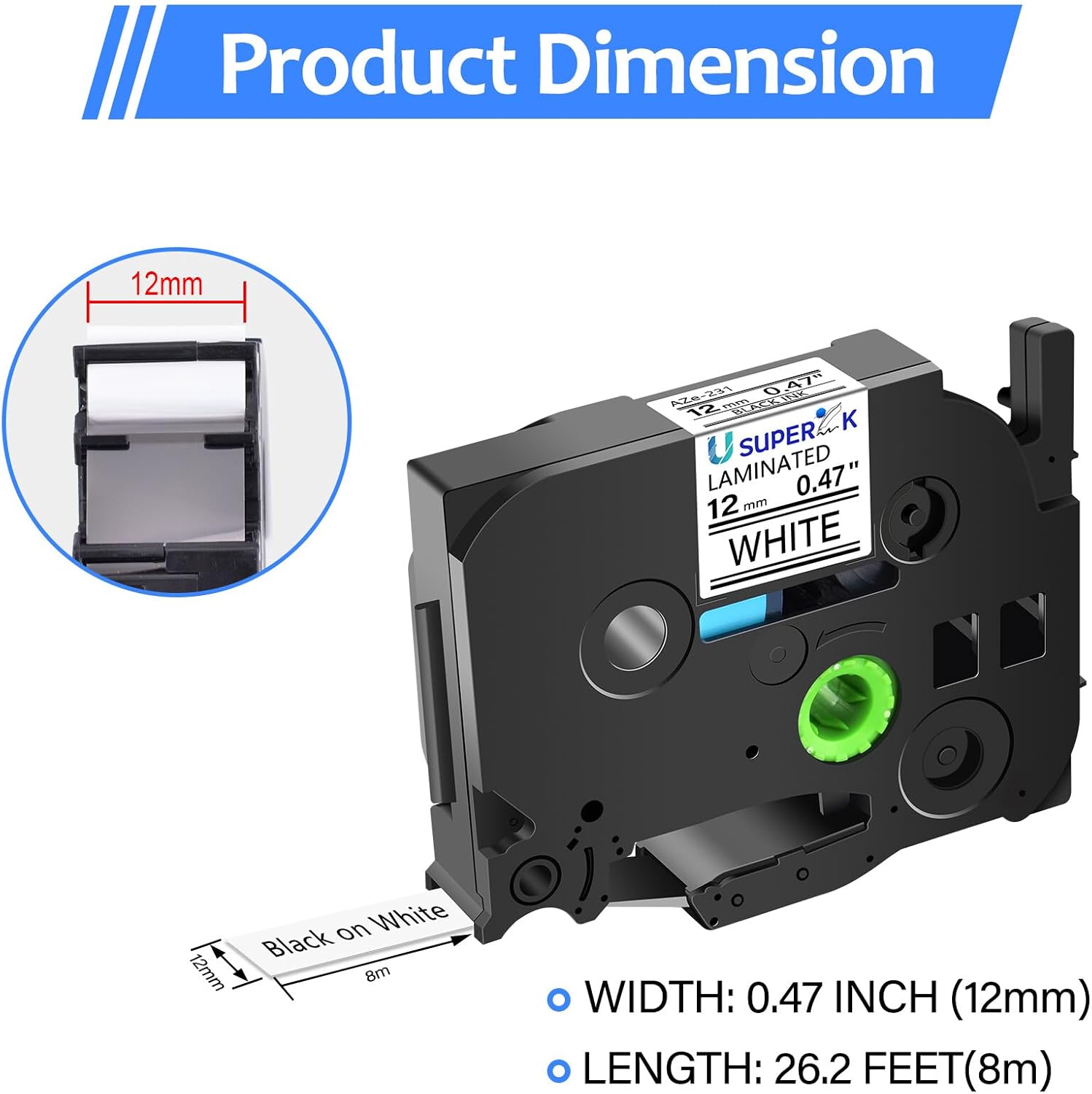 - USUPERINK compatible for Brother p-touch label tape TZe-231 TZe231 TZ-231 TZ231 AZe-231 1/2 inch 12mm 0.47'' laminated white tape