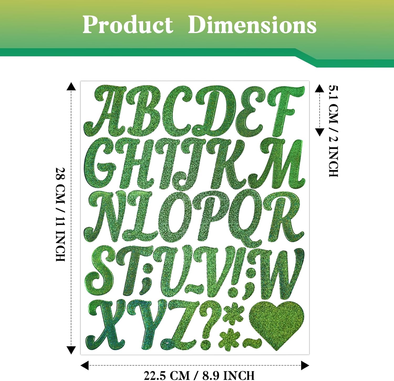 Glitter Letter Stickers,10 Sheets 2 Inches Self-Adhesive Vinyl Letters Alphabet Sticker Decals for Scrapbook,Door,Mailbox,Bulletins Boards -Green