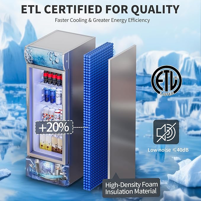 - Advanced Insulation & Visibility: Double-paned tempered glass in this commercial fridge blocks UV/heat. 20% thicker cyclopentane insulation ensures cool-air containment. Seamless design offers clear visibility as a ideal display refrigerator with glass door